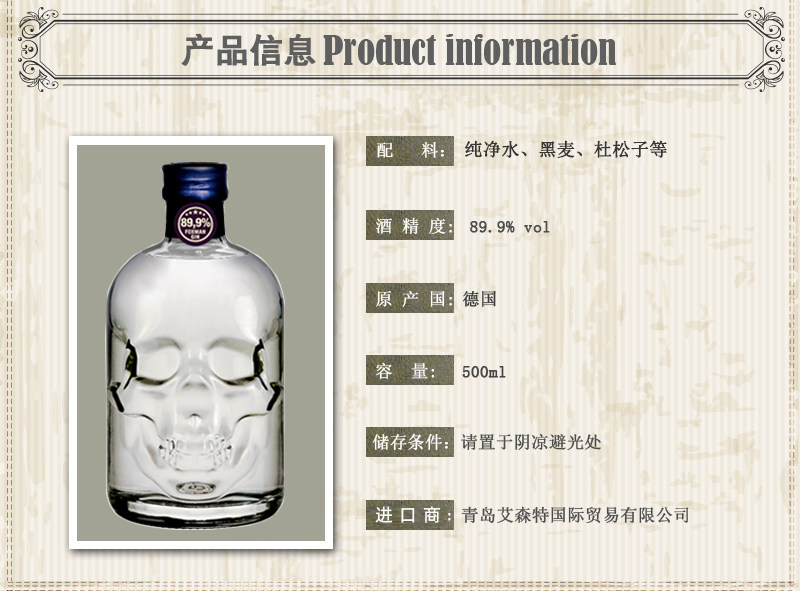 商品名称:进口酒72度茶酒+89.9度苦艾酒、金酒+96度生命之水伏特加洋酒套餐