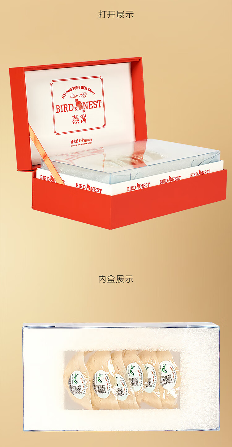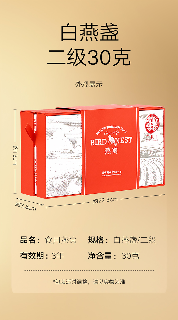包装清单:北京同仁堂 白燕盏 燕窝盏 燕窝礼盒装30g 二级*1