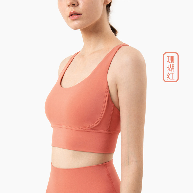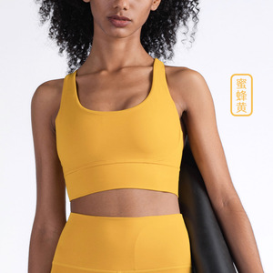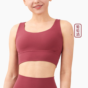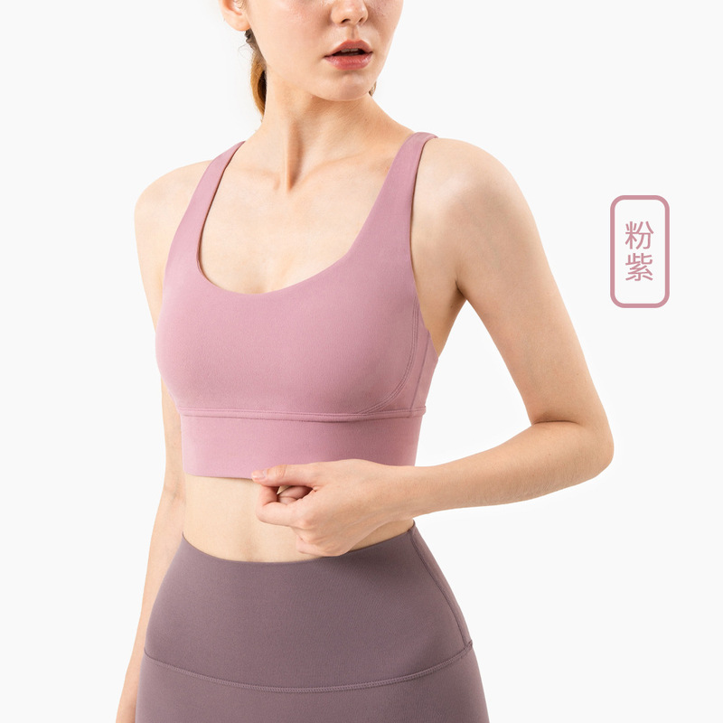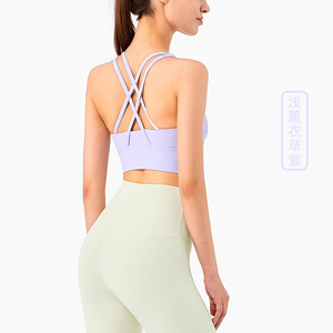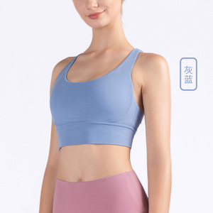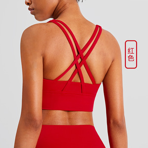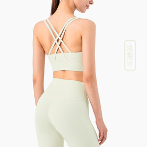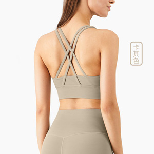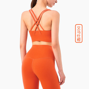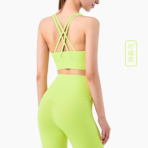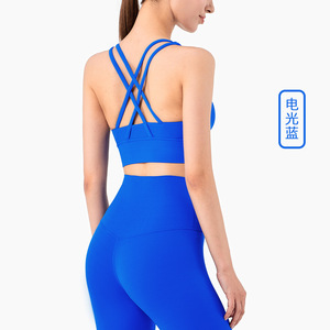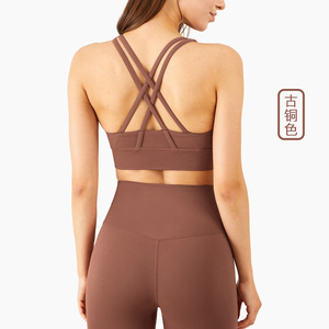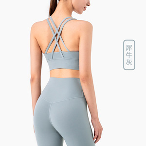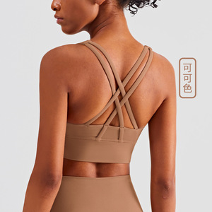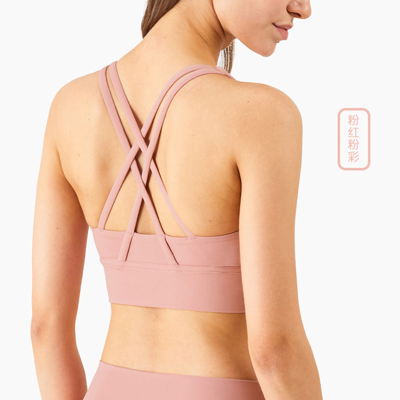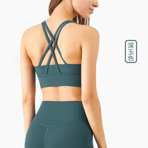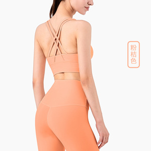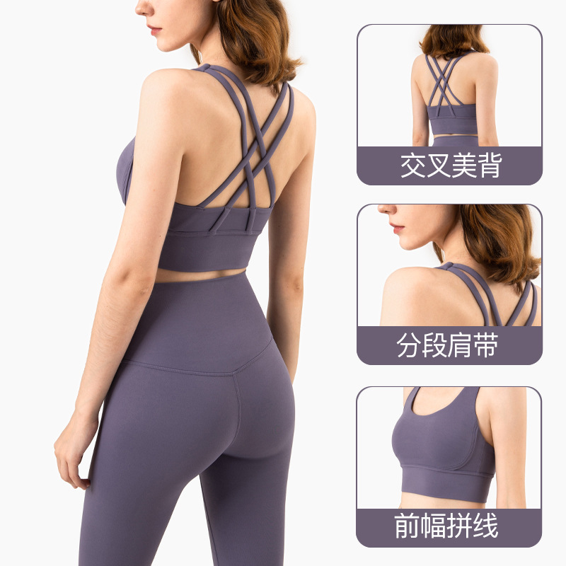 2022春夏新款弹力裸感瑜伽服运动背心 防震交叉美背健身跑步文胸