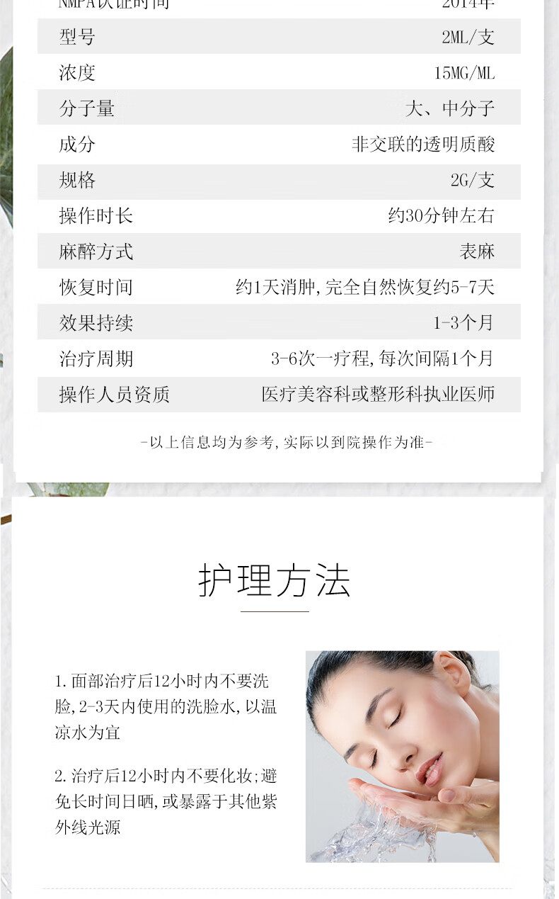 商品名称:奢己医美 华熙润月雅水光针补水 医疗美容 深层补水/润泽透亮/淡化细纹/美白嫩肤润百颜医疗美容 润月雅水光针2ml+1ml VC