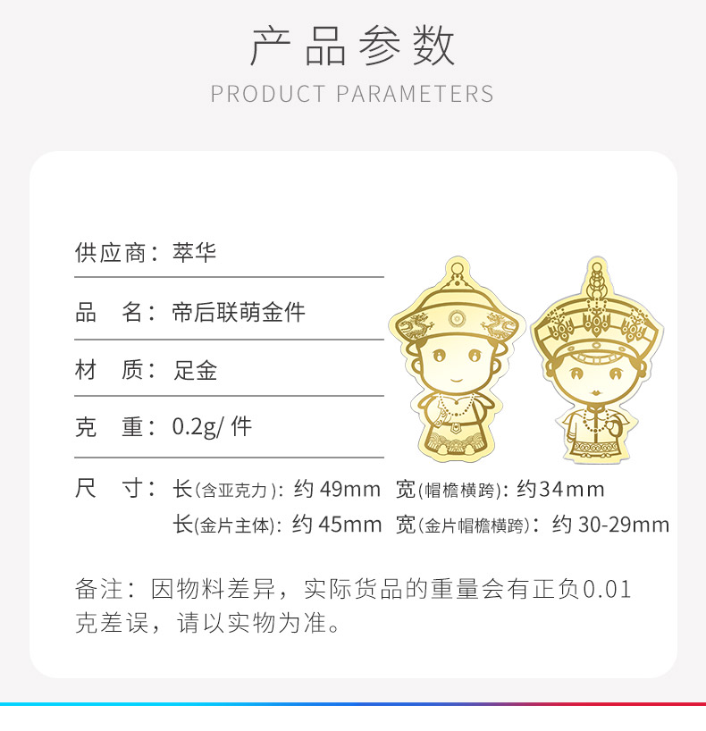商品名称:足金帝后联萌金件