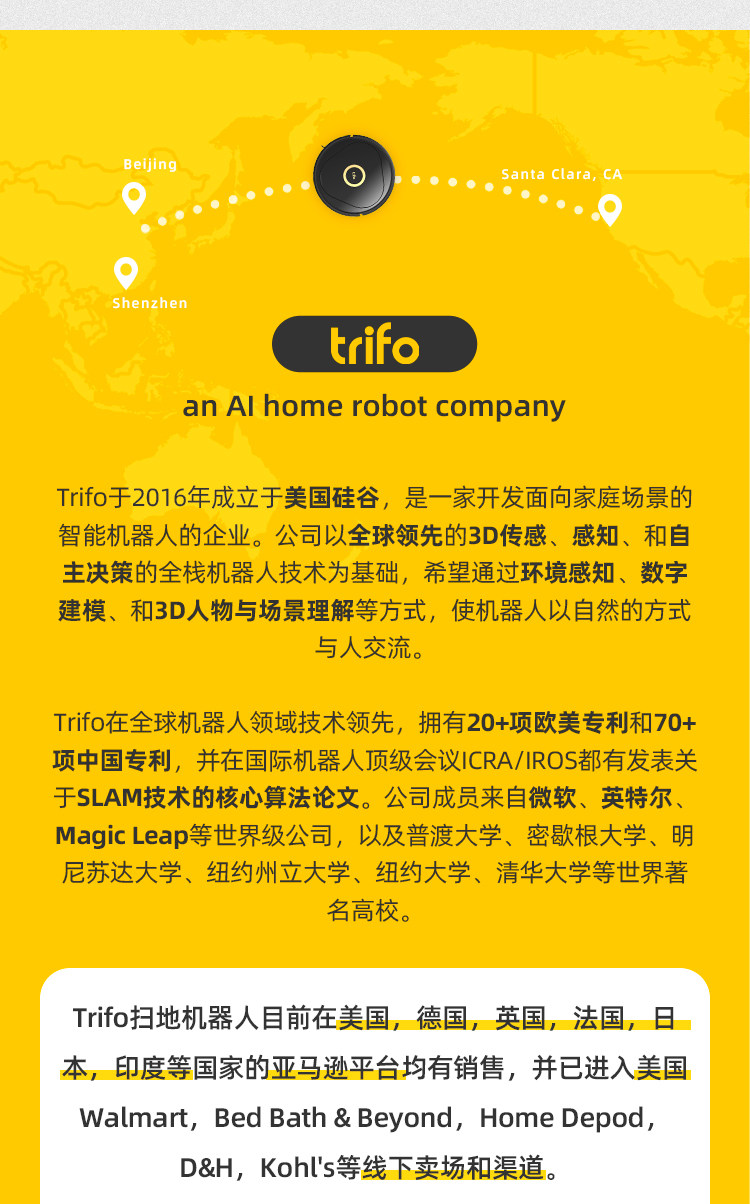 美国Trifo智能扫地机器人自动吸尘器家用吸扫拖一体机 品牌直邮
